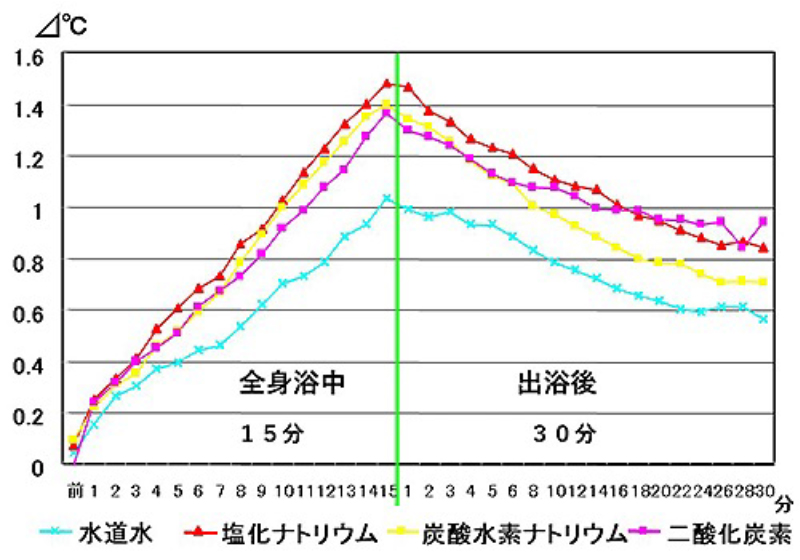 温熱効果プラス、含有物質による化学・薬理作用によって出浴後も体温が高いまま維持できるようです。