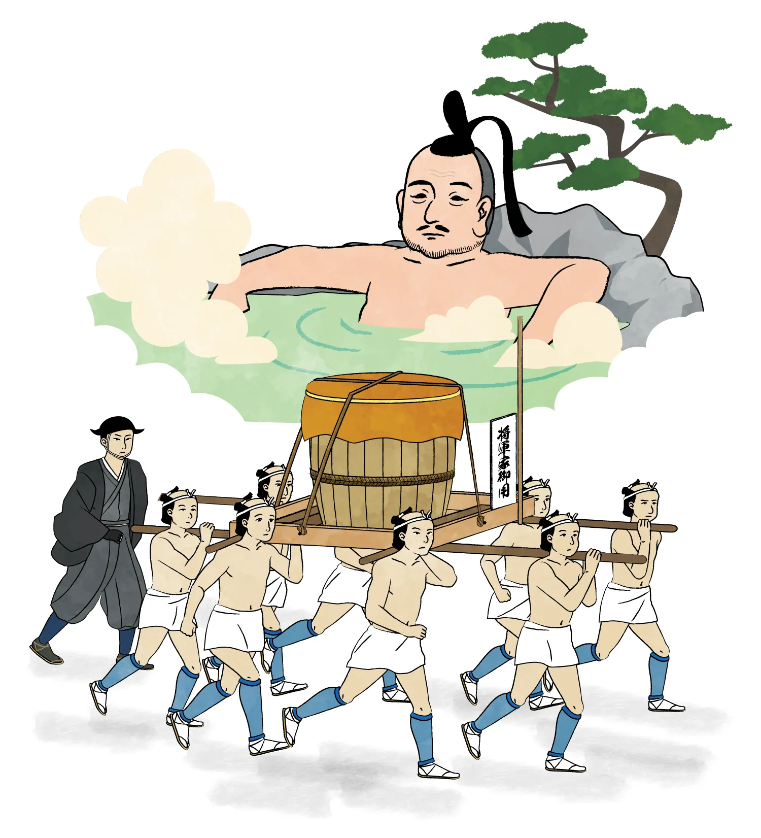 100度近い大湯の源泉を、木の香立つ檜の桶に汲み入れ、人足が樽を担いで、江戸城までの28里(約110キロ)の道のりを昼夜兼行で走ったそうです。