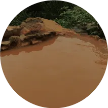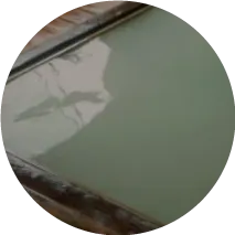 鉄イオンを1kg中20mg以上含む濁り湯の代表的な泉質の温泉。湧出直後は無色透明だが、温泉水が空気に触れると酸化し、鉄による茶褐色の濁りや沈殿物を生じるために「黄金の湯」と言われています。