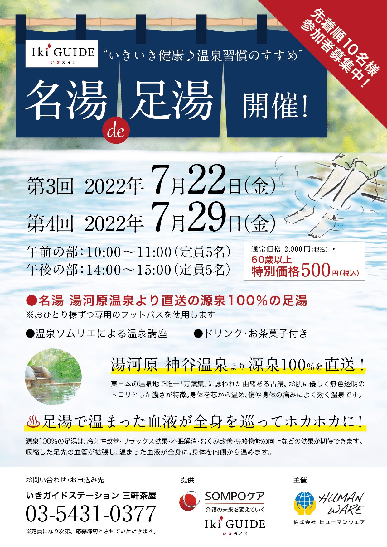 第3,4回「名湯de足湯」はSOMPOケア「いきガイドステーション」で7/22,29(金)開催