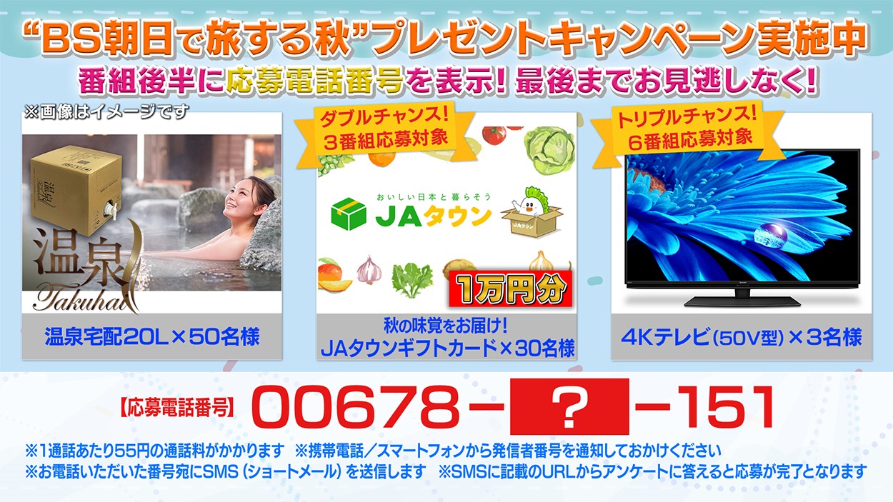 スペシャルウィーク“BS朝日で旅する秋” プレゼントキャンペーン賞品に選ばれました。