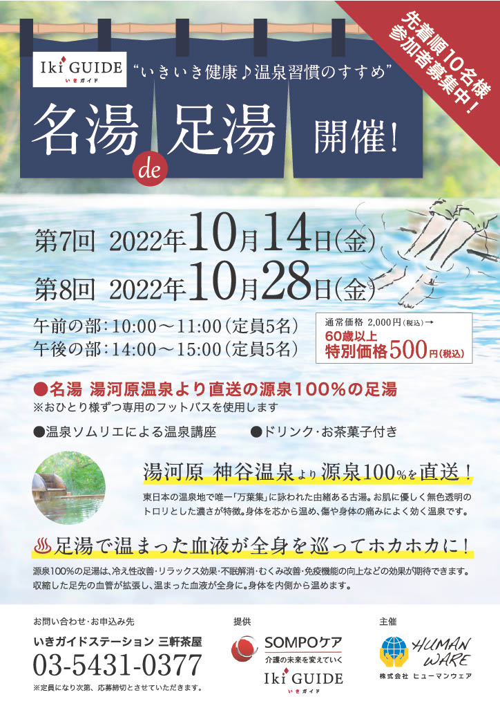 秋に最適「名湯de足湯」イベント10/14,10/28開催(SOMPOケア いきガイドステーション)