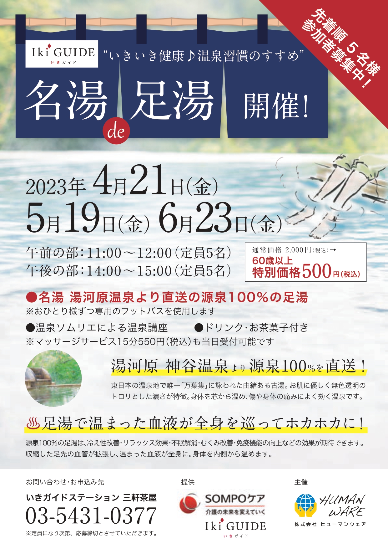 大好評「名湯de足湯」4/21,5/19,6/23開催(いきガイドステーション三軒茶屋)