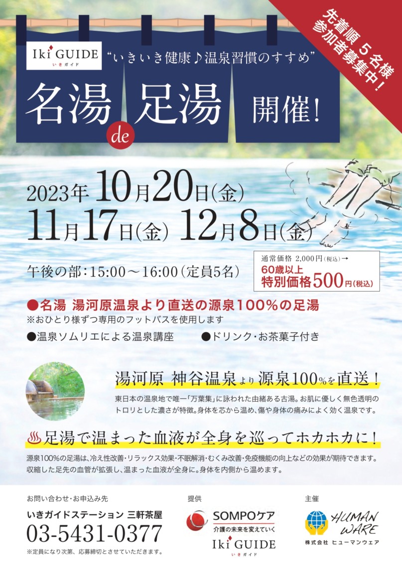 秋本番「名湯de足湯」10/20,11/17,12/8開催(いきガイドステーション三軒茶屋)